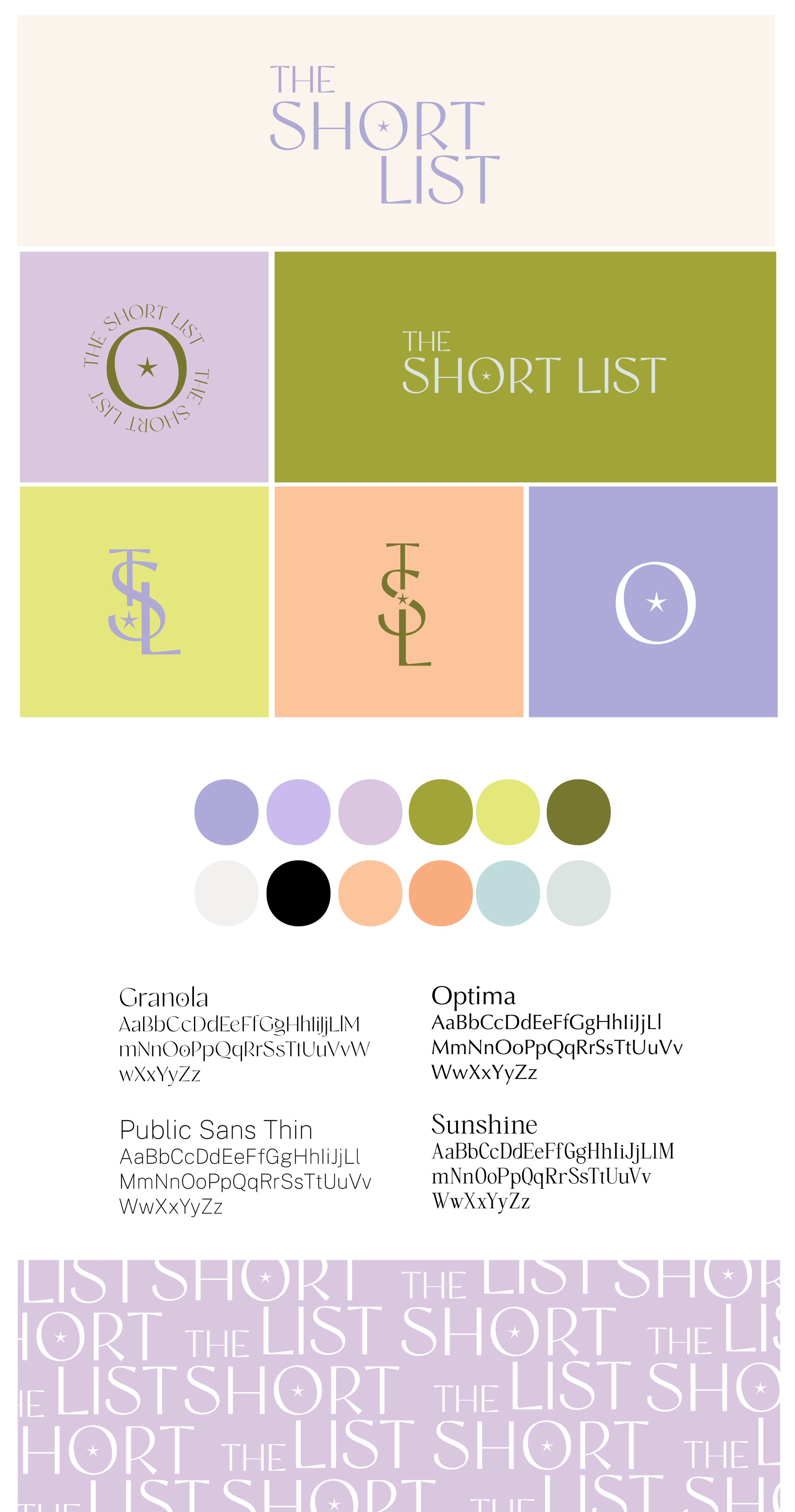 THE BRIEF: The Short List is a new brand focusing on sharing local businesses, recommendations and events for ex-pat families in Dubai. They wanted a logo that was sophisticated and cool, with fashion and beauty vibes. They wanted a beautiful font that could represent the brand, and elements like stars or bullet points to feature their main goal of the business.